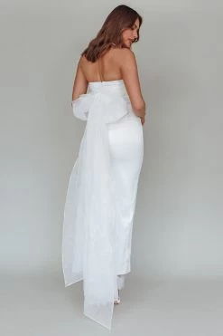 You’ll be unforgettable in our stunning Always And Forever midi dress. We are so in love with the oversized bow feature in the back! Perfect for your big day teamed with white pumps and a pearl necklace for a look we are loving.