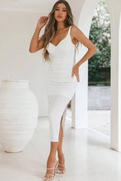 You’ll be unforgettable in our stunning Always And Forever midi dress. We are so in love with the oversized bow feature in the back! Perfect for your big day teamed with white pumps and a pearl necklace for a look we are loving.