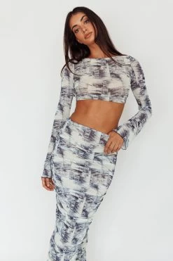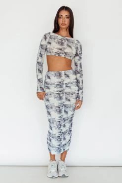 You will stop traffic in our super hot Blue Moons midi skirt. We are in love with its trendy print and ruching detail to accentuate your curves. Perfect for Friday night at your fave rooftop teamed with its matching crop top and boots.