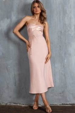 Steal the show in our elegant Brittini midi dress. Featuring satin detail in the bust and a string tie around the waist, it’s perfect for a wedding or birthday celebration! Team it with diamante mules and a satin clutch for an unforgettable look.