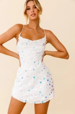 Hey there, cutie! You are turning heads tonight in our gorgeous Candid Moment dress. The sequin embellishment will light up the night as you twirl your way across the dance floor. Perfect for a girls’ night out teamed with strappy, metallic heels and a purse.