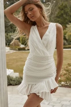 Make beautiful memories in our Cherish The Moment dress. Featuring a stunning hail spot textured fabric and gorgeous ruching and ruffle detail. Perfect for a bridal shower or homecoming! Team it with a chic clutch and minimalist, white heels.