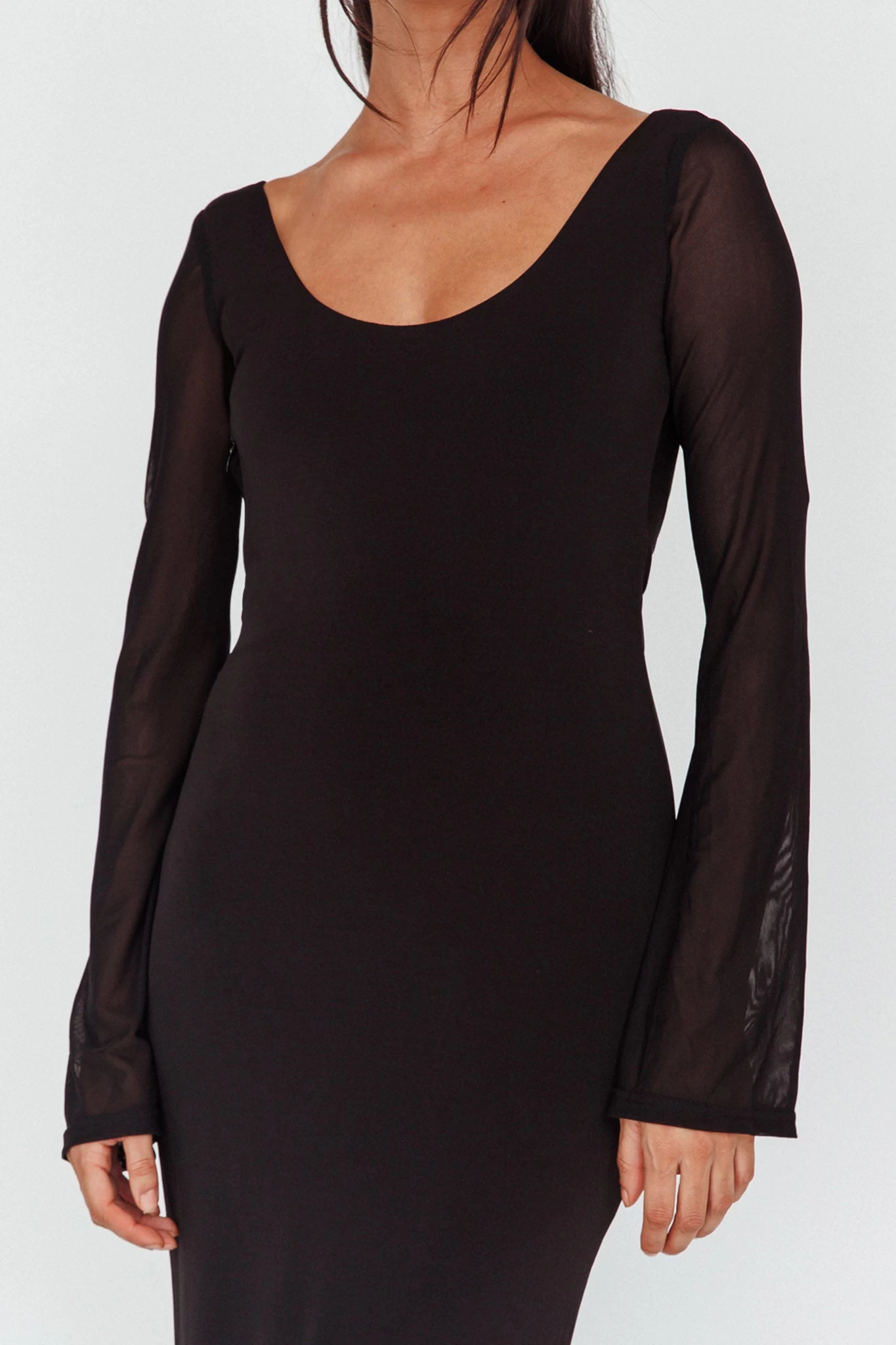Heads will turn when you walk in wearing our showstopping Crystal Ball maxi dress. Featuring sheer, long sleeves, an open back and ruching in the back of the skirt. Perfect for a birthday soiree or special occasion. Team it with black heels and a clutch for an unforgettable look.