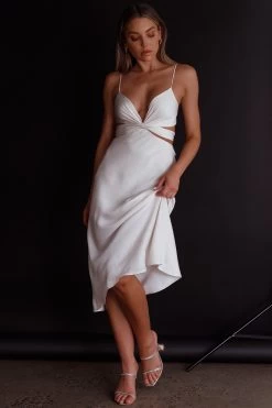 You’ll be swept of your feet in our pretty Dance With Me midi dress. The perfect dress for wedding season or outdoor, Summer events. We are in love with its crossover bust feature and soft satin fabric. Team it with mules and a clutch for an elegant look we are loving.