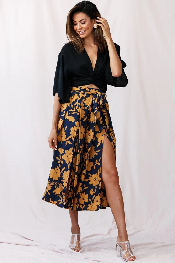 Pack your bags because these pants will have you wanting to go on a tropical vacay, stat. Featuring an on-trend midi length, breezy splits to show off your tanned pins, invisible zipper and a separate tie-up belt. We’re in love with the pretty floral print fabric. Team them with your favorite crop-top and wedges or crochet bikini top, sandals and a pina colada and hit the beach in style!