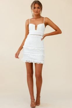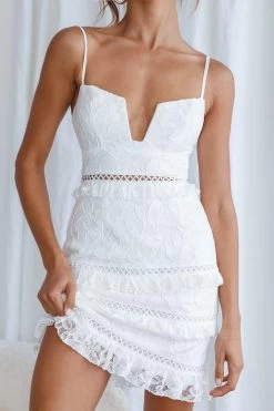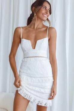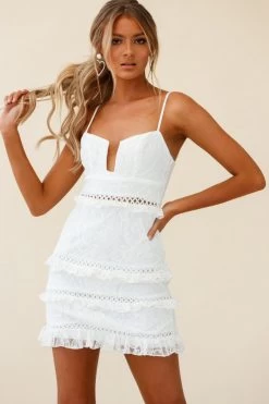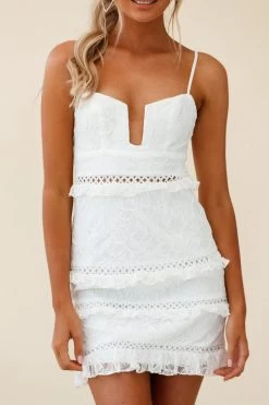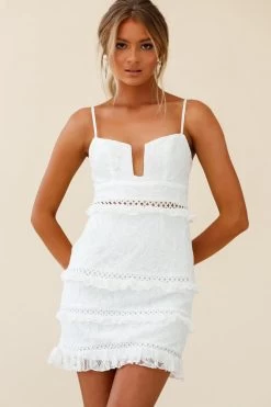 Jaws will drop when you strut by in our hot af Dear Lover dress. We love the uniquely shaped, plunging bust, and the crochet and frill inserts are the icing on the cake. Perfect for a bachelorette party or special occasion birthday. Team it with some strappy high heels and statement earrings to complete the look.