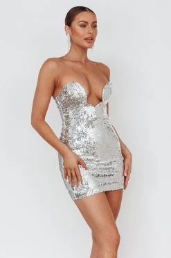 - Silver sequin mini dress