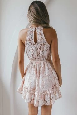- Apricot, lace mini dress