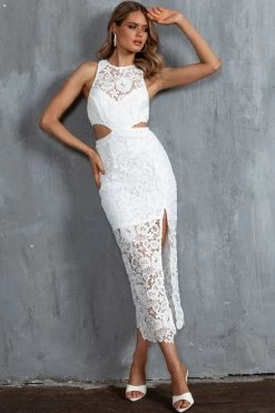 Turn heads in our gorgeous Fiorentina midi dress. We are in love with its lace overlay and cut-out waist. Perfect for a bridal shower or a birthday celebration. Team it with white heels and a small tote for an elegant look.