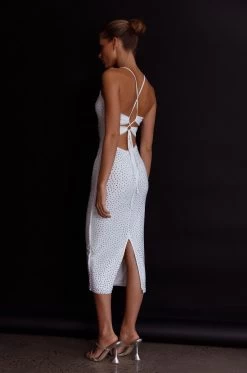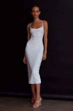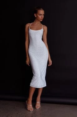You will light up any room in our stunning Goodnight Kiss midi dress. Featuring stunning crystal embellishment and an amazing, strappy back. Perfect for a bachelorette party or special birthday celebration. Team it with diamante heels and a clutch for a super hot look.