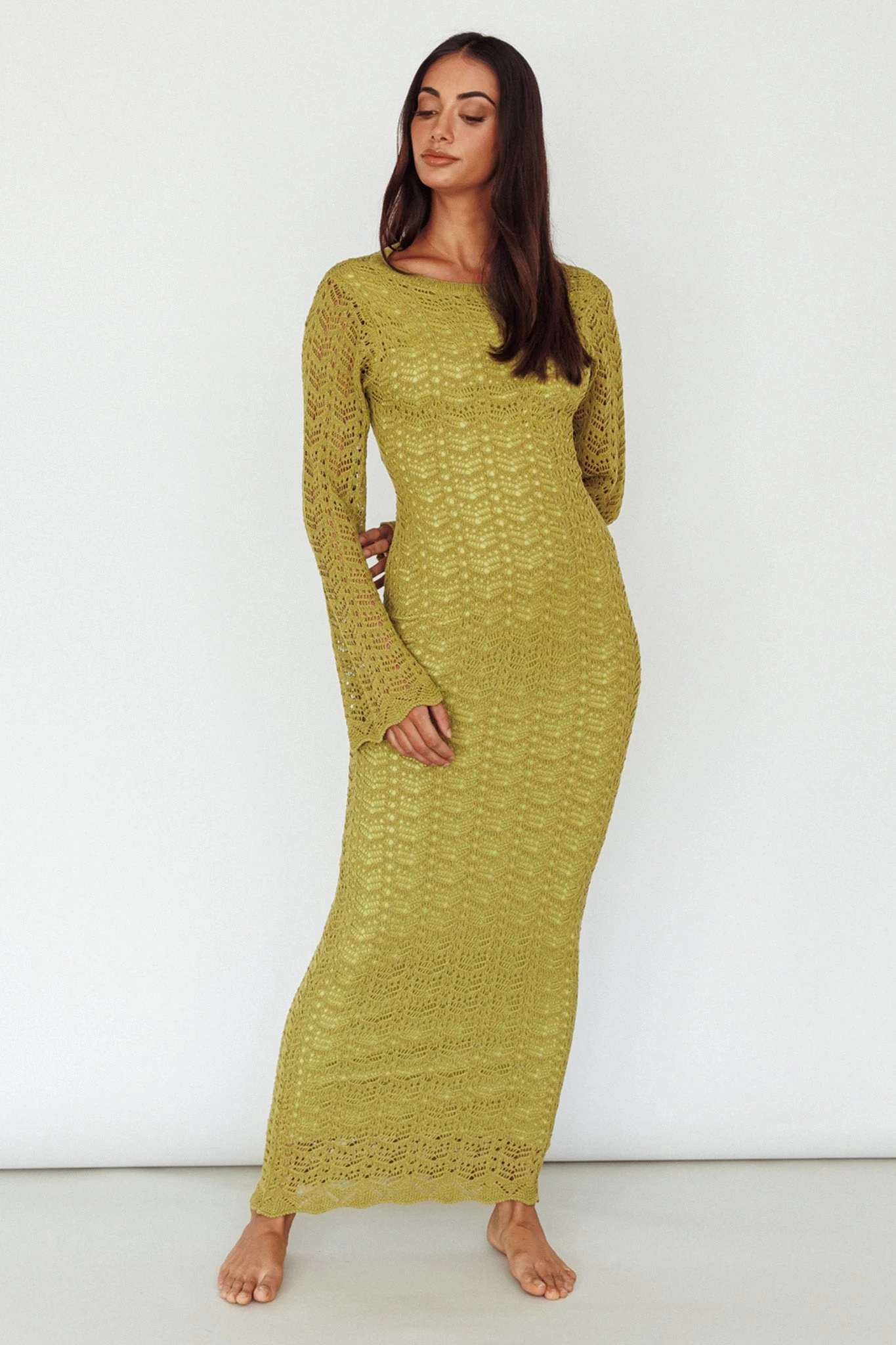 Breeze through your weekend in our pretty Hyland maxi dress. We are in love with its on-trend crochet knit throughout and sexy, open back. Perfect for sunset happy hours teamed with wedges and a basket-weave bag for a super cute look.