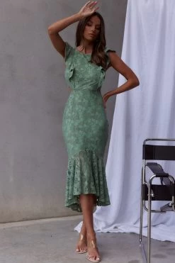 - Avocado floral lace dress