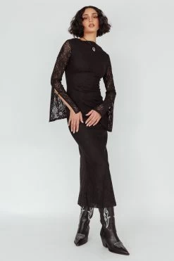 Steal the show in our gorgeous Kalia midi dress. Perfect for a romantic date night with your love. We are obsessed with its lace fabric and tie detail in the sleeves. Team it with black heels and a clutch for an unforgettable look.