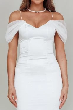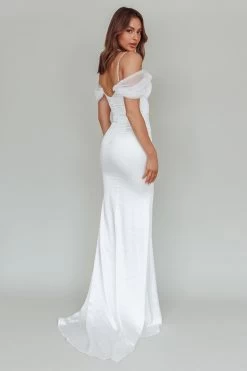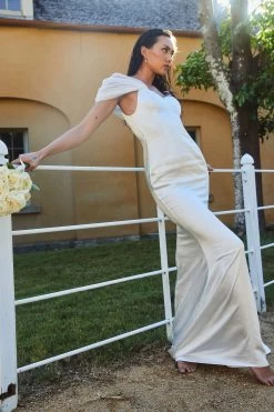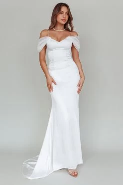 Steal the show in our gorgeous Keila maxi dress. We are in love with its stunning off-shoulder sleeves and flattering sweetheart neckline. Perfect for the modern bride or a special occasion. Team it with white heels and a clutch for an unforgettable look.