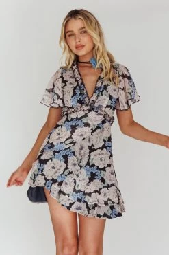- Blue floral mini dress