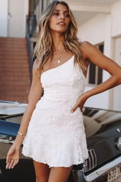 Make a statement in our stunning Lilah dress. We are obsessed with that gorgeous embellished fabric throughout and trendy one-shoulder style. Perfect for a bridal shower or special occasion teamed with nude mules and a clutch.