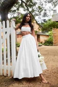 You’ll feel like a princess in our stunning Love Songs maxi skirt. Featuring a gorgeous bow tie in the back, it’s perfect for a modern bridal look. Team it with its matching crop top and diamante drop earrings for a look that won’t be forgotten.