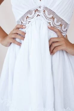 Dance through your day in our pretty Maple dress. Featuring the most gorgeous embroidery trim details under the bust and in the back, a flattering halterneck style and fluted hem, you won’t want to take it off. Perfect for a sunny Sunday happy hour with your girlfriends, teamed with canvas wedges and a woven straw bag.