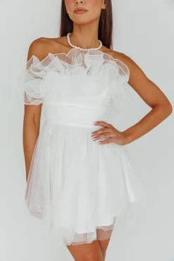 You’ll look like you just stepped out of Heaven in our gorgeous My Beloved mini dress. Featuring an organza frill accent in the neckline, it’s perfect for a bachelorette or graduation! Team it with white heels and a satin clutch for an unforgettable look.