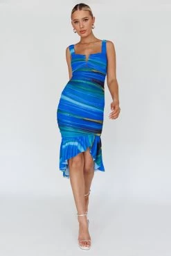 - Printed blue midi dress