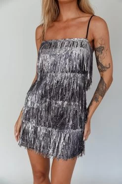 Steal the spotlight in our stunning New York Nights mini dress. Featuring layered, sequin fringing throughout, it’s perfect for dazzling on the dance floor on a night out with your besties! Team it with silver heels and a clutch for an unforgettable look.