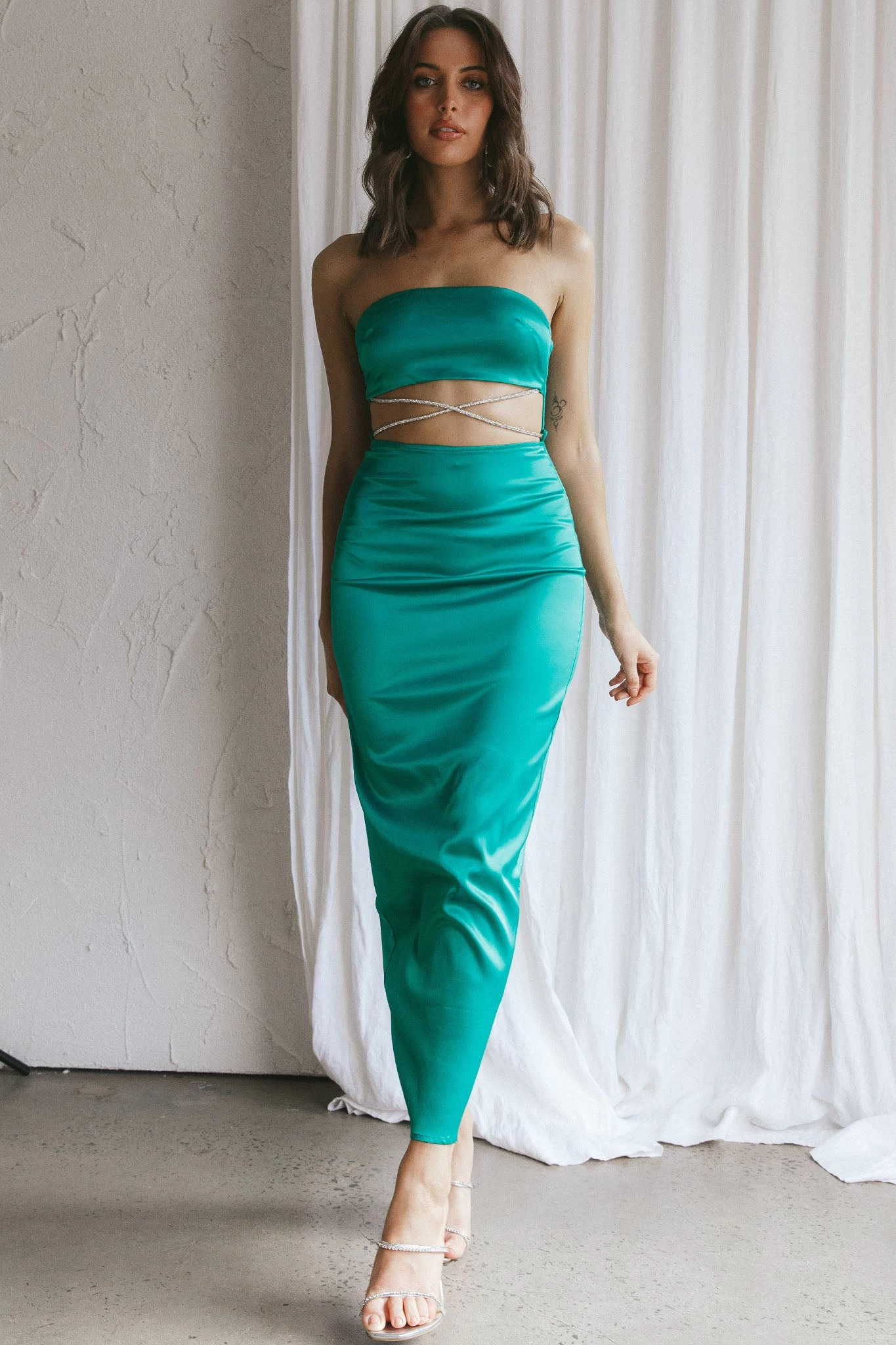 Make an entrance in our hot Nohemi maxi dress. Featuring a cut-out waist with diamante strap detail that ties in the back, we’re obsessed! Perfect for a girls’ night out or birthday celebration teamed with a clutch and diamante mules!