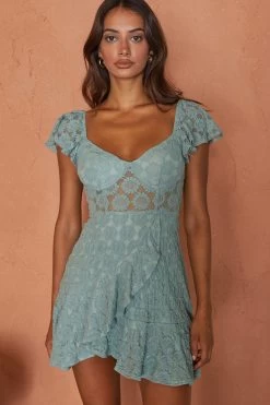 We are head over heels for our Secret Crush dress. Featuring a floral lace overlay and adorable ruffle trim detail. Perfect for a bridal shower or birthday celebration. Team it with tan mules for a super cute look we are loving.
