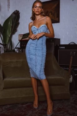Leave a lasting impression in our Shawna knee length dress. We are obsessed with its structured bust and bodycon style to hug those curves! Perfect for weekend brunching with your besties. Team it with your fave strappy mules and a tote for a trendy look.