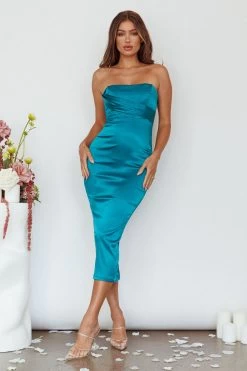 Make a grand entrance in our gorgeous Still Mine midi dress. Featuring a strapless style and on-trend green hue, it’s perfect for a wedding or special occasion. Team it with silver heels and a clutch for a look we are loving.
