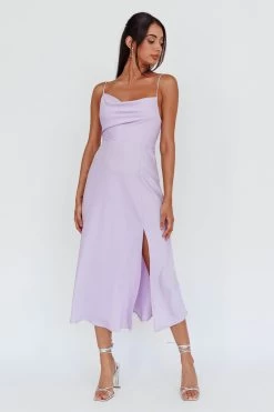Make an entrance in our gorgeous Suki dress. Featuring a modest but classy silhouette with a sexy front split. We are in love with that cowl neckline and silky fabric. Perfect for a flirty first date teamed with nude, tie-up heels and a clutch.