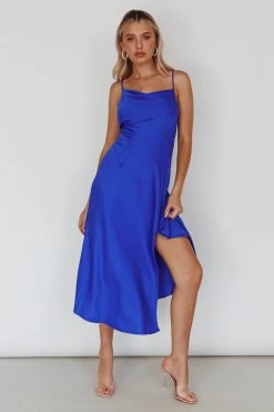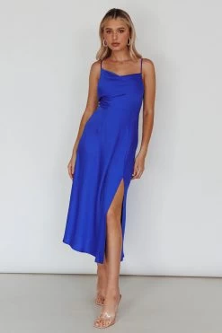 Make an entrance in our gorgeous Suki dress. Featuring a modest but classy silhouette with a sexy front split. We are in love with that cowl neckline and silky fabric. Perfect for a wedding or prom teamed with nude, tie-up heels and a clutch.