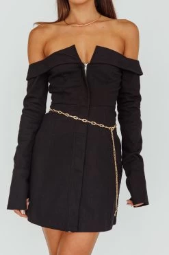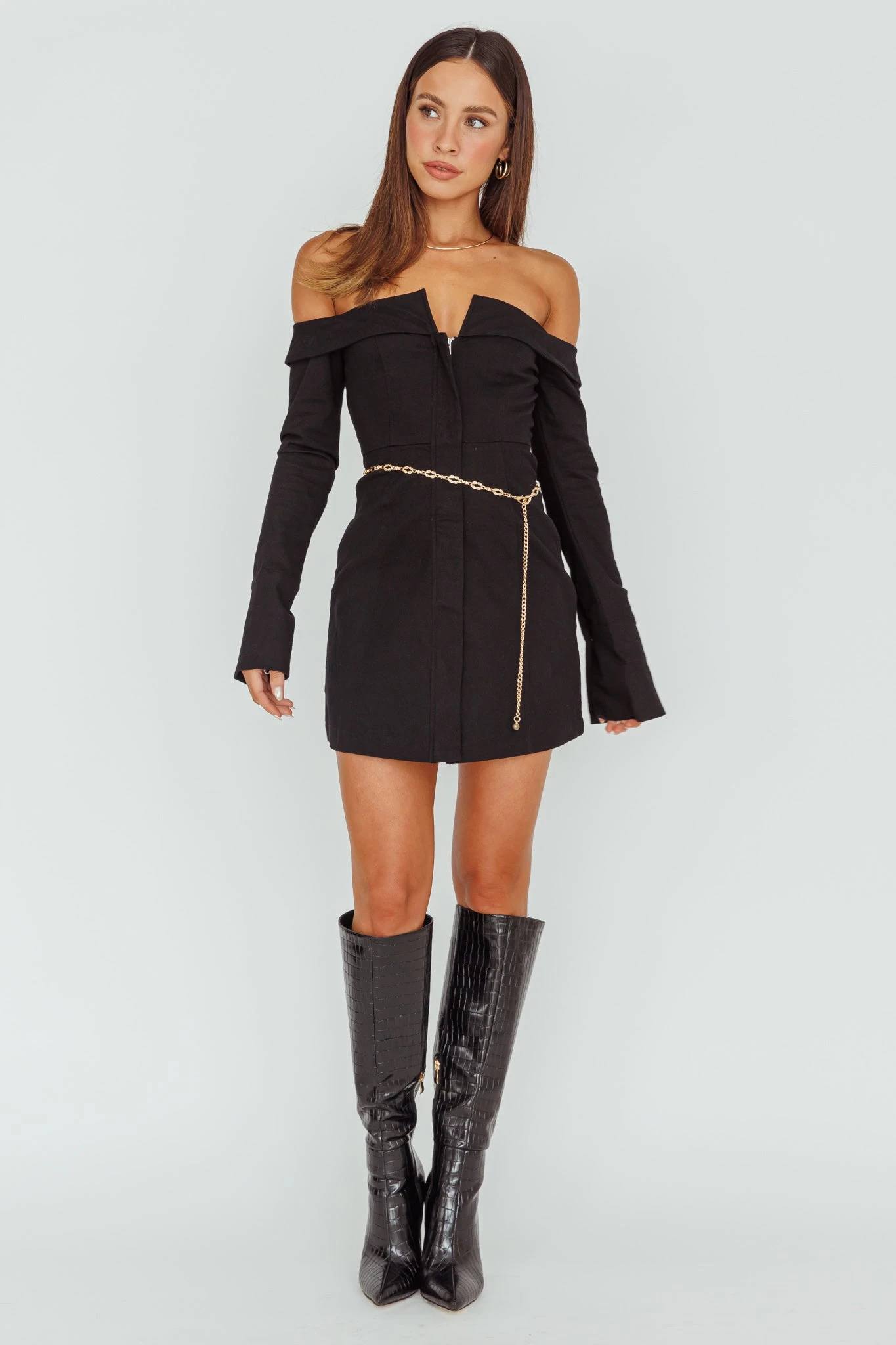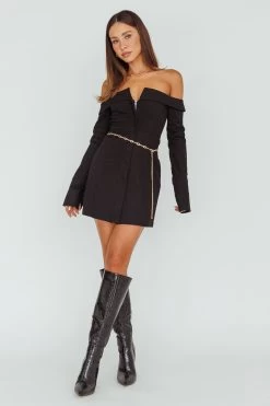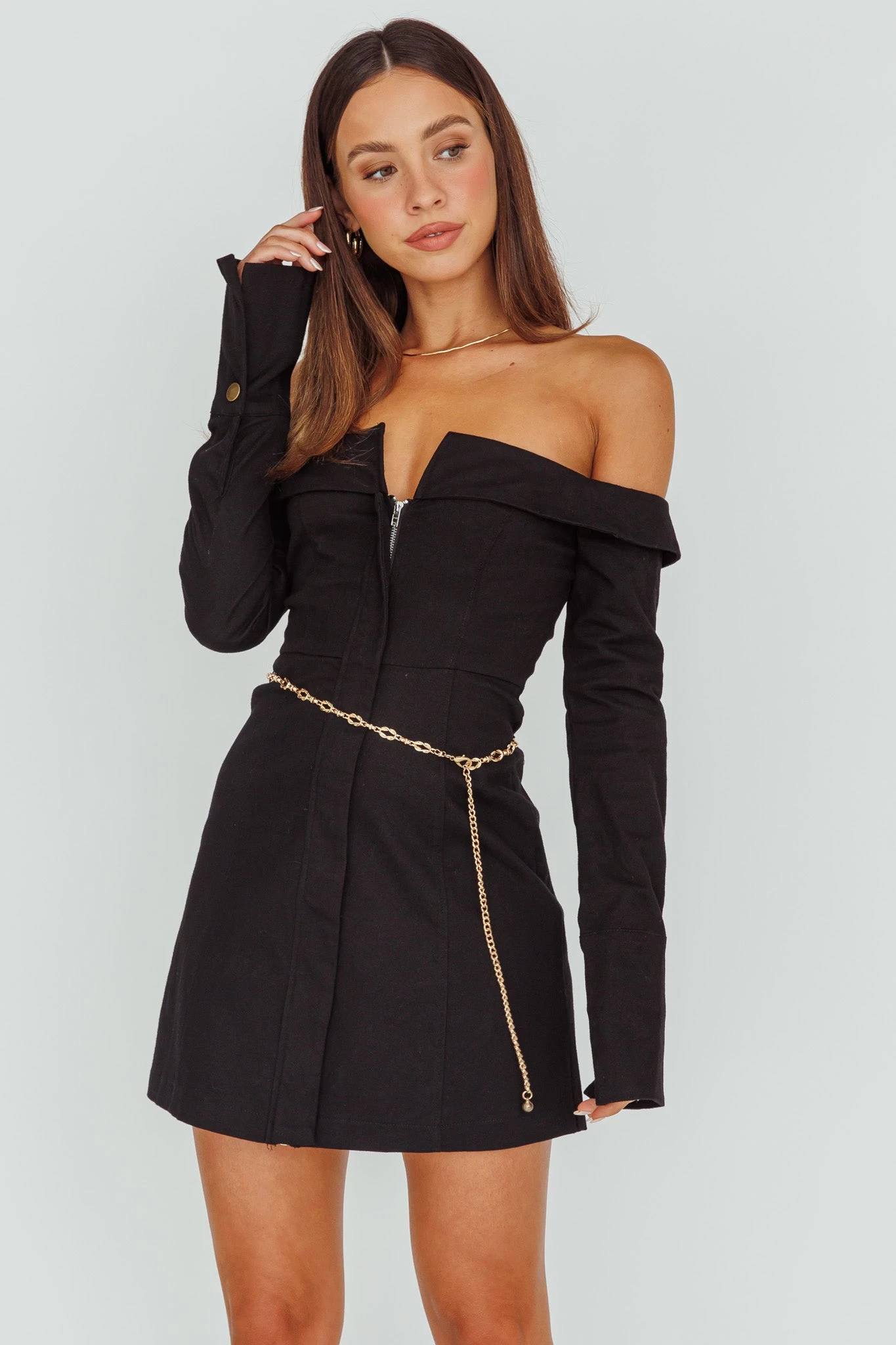 You’ll go straight to the best-dressed list in our super chic Tamra mini dress. We are obsessed with its foldover neckline and zipper detail in the front. Perfect for a night out with your girls teamed with knee-high boots and a saddle bag.