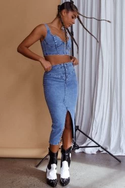 Hey there, cutie! You’ll be flooded with compliments in our super sweet Trina skirt. We are loving that button detail in the front! Perfect for a weekend catch up with your besties teamed with its matching crop top for an adorable look we are loving.