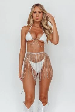 Light up the night in our stunning Venus Rising bodychain skirt. Featuring diamantes throughout, it’s perfect for a music festival or bachelorette weekend. Team it with a mini skirt and western boots for a hot look we are loving.