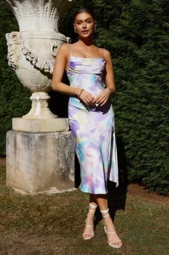 - Purple/yellow watercolor print dress