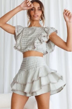 Live your best life in our pretty Wild And Free shorts. Featuring unique pintuck pleat detail and layered ruffles, it’s sure to get you noticed! Wear it to Sunday brunch with your besties teamed with strappy, white mules and its matching crop top. Cute!