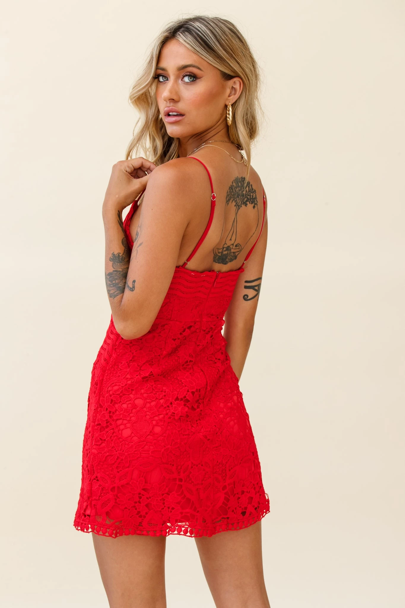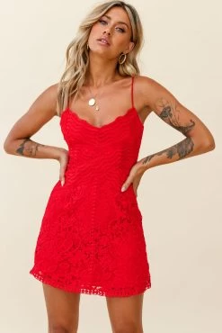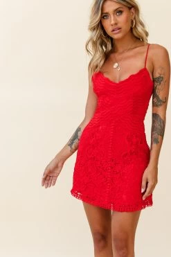 - Red lace dress